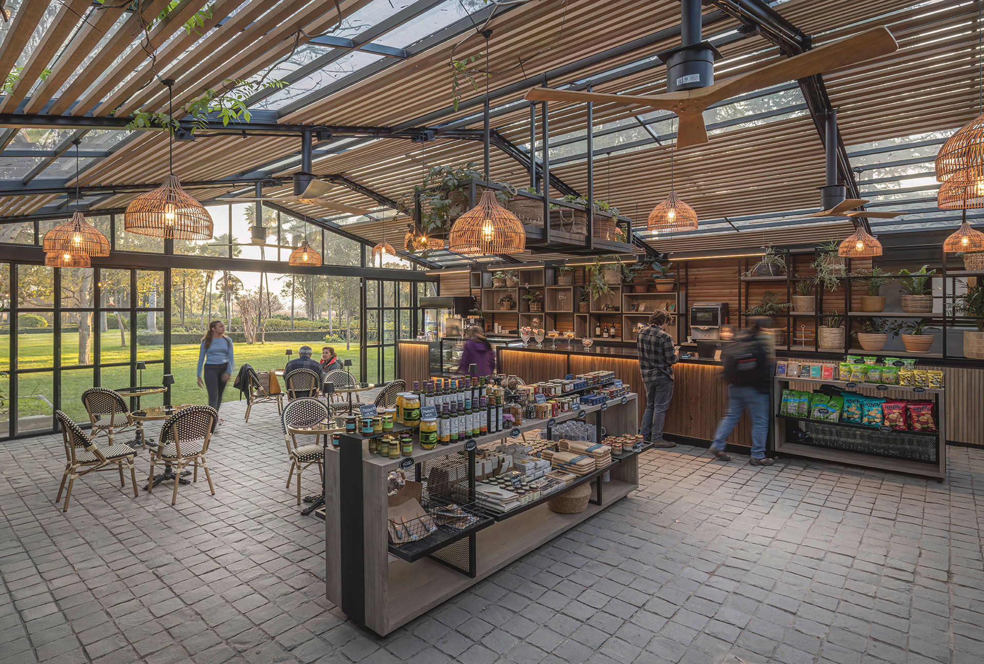 El espacio se concibe como una pausa sensorial, donde los límites entre interior y exterior se desdibujan, generando una atmósfera amplia, luminosa y libre de elementos estructurales que interrumpan la vista. El diseño pasivo se privilegió para lograr confort bioclimático, utilizando ventilaciones cruzadas y treillage que proporciona sombra orgánica y dinamismo lumínico a lo largo del día.